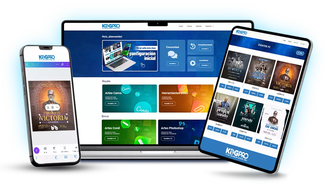 Al comprar KDGPRO al precio más bajo de la historia, no solo tendrás acceso a más de 2.000 artes, sino que también recibirás +02 productos increíbles que revolucionarán la forma en que tu iglesia crea contenidos de máxima calidad.